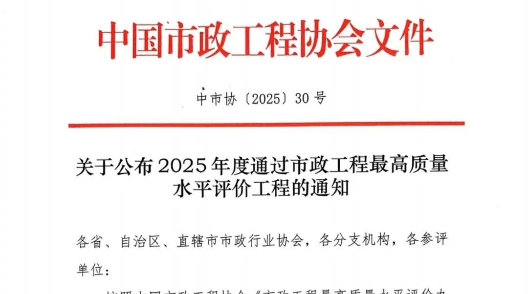 青島城投榮獲“中國市政工程最高質(zhì)量水平評價(jià)”